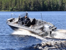Silver AluFibre™-boats, known as Silver Y-series, are totally unique boats. The stiff hull, made out of marine aluminium combined with interior made from reinforced plastic, make the boat exceptionally sturdy, comfortable and safe. The structure makes the boats also distinctly quiet. The AluFibre™-boats are easy to uphold. The fiber-reinforced plastic interior is neat and the color does not fade in the sun. Apart from being easy to keep clean, reinforced plastic helps keep your possessions dry in the storage compartments even in rainy or stormy weather. The lifting strakes on the lower sides of the hull reduce fraction so that the boat tilts less than boats with even hull designs when moving under high speed. This also makes the Silver boats more fuel‑economical and helps with sheltering both the interior and the passengers better from wind and splashes. Silver boats are easy and fun to drive even in rough weather.