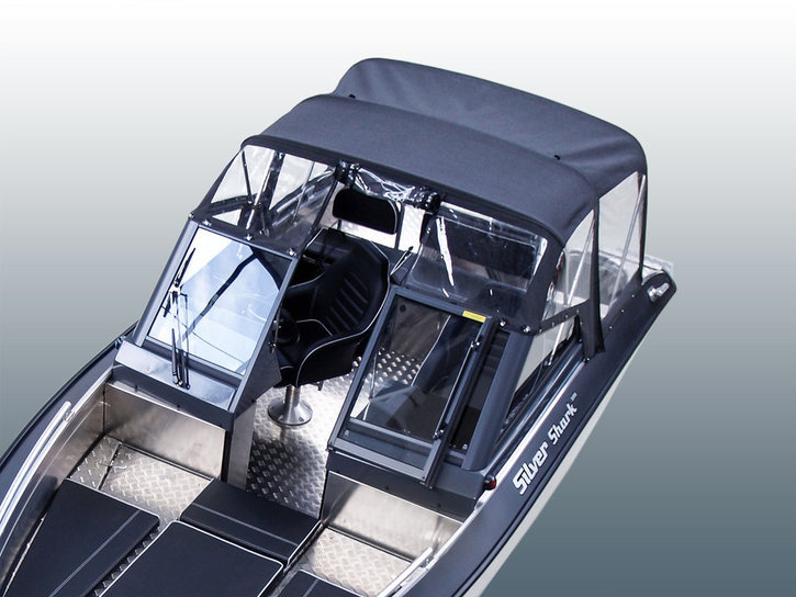 Accessory pack for Shark BRX. Premium pack includes: flag pole, mooring package, Raymarine Axiom+ 12 RV + CPT-S -echo sensor, stern canopy, trim tabs, windscreen wiper for the driver and stern cushions.