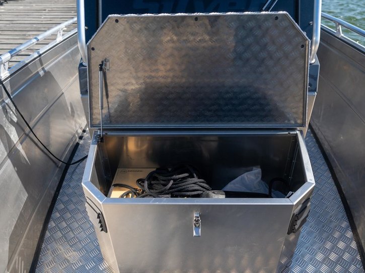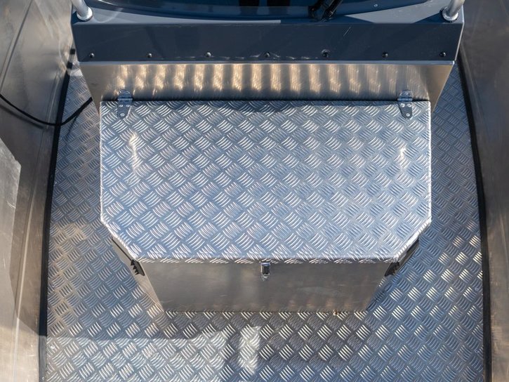Storage box out of aluminium for the front side of the console.