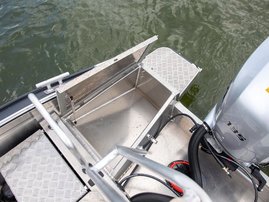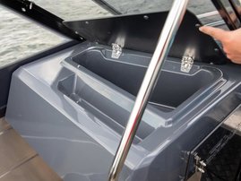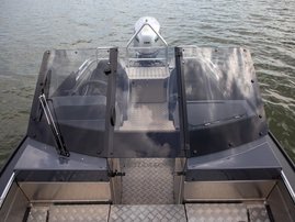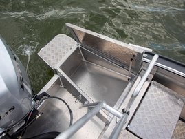 The bow has been designed in order to function well both in day-to-day use and during fishing trips. In daily use, you have a clear walkway in the middle and on both sides spacious storage compartments for both fishing equipment and other personal belongings. The walkway in the middle, which facilitates easy and safe boarding, can however easily be covered with a separately bought aluminium plate in order to transform the whole bow area into one large casting deck. On this aluminium plate it is also possible to install a fishing butt seat for spin fishing.