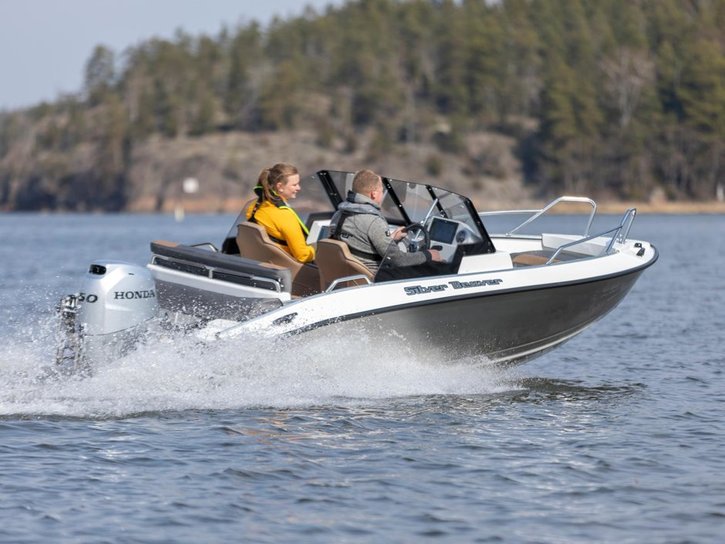 The fully renewed Beaver BR has grown 30 centimeters in length and a lot more in terms of standard equipment. The boat’s design represents Silver’s new line, which is familiar from the Silver Foxes; the frameless windscreen enables excellent visibility in every direction and the height of the screen gives good shield for the driver, co-driver and passengers traveling in the stern. The use of space in the boat has been well thought-out; the spacious aft has plenty of leg room for both passengers and driver/co-driver, the consoles give good shelter from the wind and the bow is spacious enough for you to transport packing and groceries etc. to the summer house. Inside the stern bench is space for two separate fuel tanks and in the bow there is good storage compartments for boating gear. As a standard the boat has e.g. a two-piece door between the consoles, a 9" Raymarine Axiom+ chartplotter and Offshore comfort seats for driver/co-driver. The lightweighted boat can be transported on a breakless trailer.