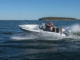 The renewed version of the Silver Beaver, the Beaver BR, is a compact yet comfortable allrounder, escecially suited for shorter leisure trips along the shorelines, city cruising and transfers to and from the summer house. Two offshore comfort seats and a separate full-width stern bench ensures comfortable journeys for all passengers. Transportable on a breakless boat trailer due to its handy size.