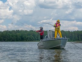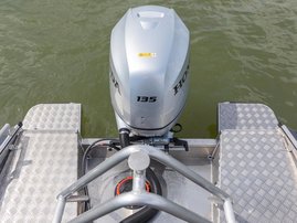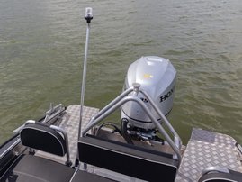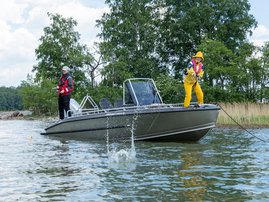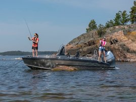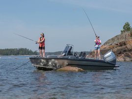 Thanks to the durable aluminium hull, landing on rocky shores or beaches, or searching for the best fishing spots in shallow waters, is not a problem and the aluminium Shark can be used all-year-round. The deck is made of long-lasting marine aluminium and with an ample number of handles and railings for downrigger holders, the boat can be converted into a sportsfisher's dream boat.