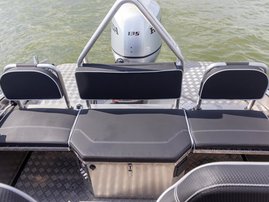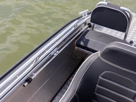 Shark CCX's hull is manufactured utilising a special triangular box structure, familiar from the other Silver boat models. These triangular aluminum side structures are densely filled with polyurethane foam that does not absorb water. Due to this construction method all the boats are extremely safe, torsionally rigid and float even if filled with water. The side box structures also help make rides quiet, as they suppress hull-borne structural noise. Shark CCX is smooth to drive even in choppy waves. The boat has a new keel list, which enables the boat to glide easily when trailering the boat.