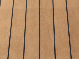 • Composite teak flooring in open areas, bow deck and on swimming platforms