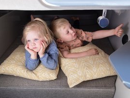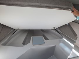 • Spacious storage underneath the cabin’s double bed (cover with gas springs)