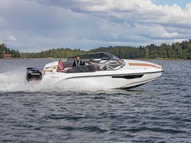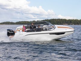 At just over 8 meters in length, Silver Raptor is not only the largest of the Silver fiberglass range, but also the largest Silver to date. The boat is designed by Norwegian design agency Eker Design AS and it builds on Petestep® technology. The bold and shapely hull called for a clean-lined, yet modern interior. We opted for calm, harmonic greytones, details in black and a cool-brown coloured composite teak deck, which is an environmentally friendly option that has a pleasant feel to it. The end result is a modern yet timeless Day Cruiser with a Scandinavian touch, that suits a wide array of boaters.