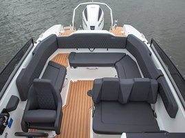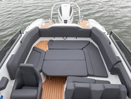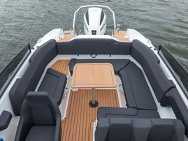 Silver Viper DC is designed for families and friends who enjoy socializing and spending time together. The spacious u-shaped sofa in the stern comfortably fits up to six people. Mounting the stern table and adding the sunmattress transforms the stern bench into a large sunbed, which also doubles as a spare sleeping berth for two adults.
