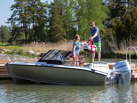Fritidsbåtar tillverkade helt i glasfiber. Skrov med Petestep®-teknologi.