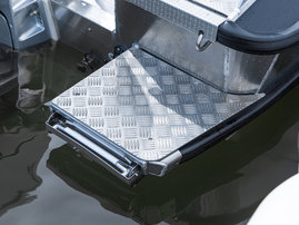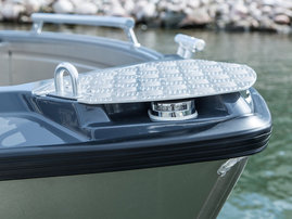 I standardpaketet ingår förutom kartplottern även en 2-delad dörr mellan styrpulpeterna, en fast monterad akterbänk, två klaffbänkar av aluminium samt 30 mm tjocka aluminiumräcken. Klaffbänkar ingår i priset, liksom även hydraulisk styrning. Navigationsljusen sitter längst fram i fören under det översta trappsteget och således väl skyddade, men synliga under mörkerkörning.