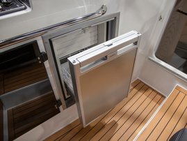 Sis. autom.trimmijärjestelmä, Fusion MS-RA60-soitin + 4 kaiutinta, jääkaappi, keulavalo, lämmitin, lipputanko, maasähköjärjestelmä 25 A, ohjaustehostin, päivitys Raymarine Axiom+ 12RV-karttaplotteriin, peräankkurivinssi (7,5 kg ankkuri, 30m ankkuriköysi), kangaskaton suoja, peräkuomun verhosarja ja varustesetti.