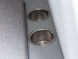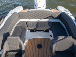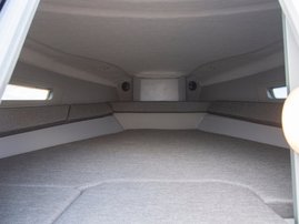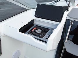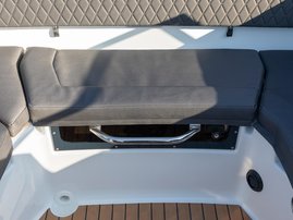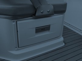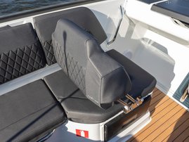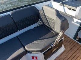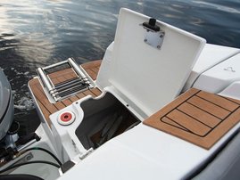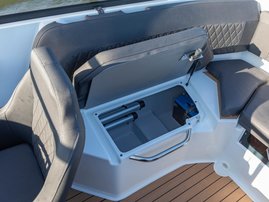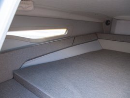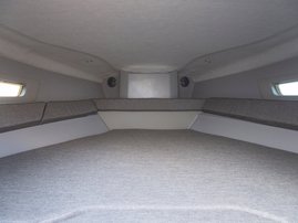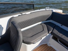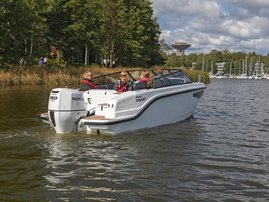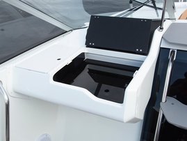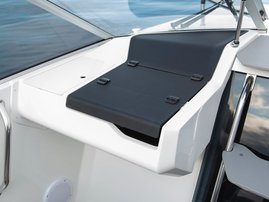 Kuljettaja istuu pyöritettävässä erillisistuimessa ja apukuljettaja sohvamaisessa taittoselkänojapenkissä, ja näin ollen seurustelu takapenkillä istuvien kanssa on sujuvaa. Vene on hyväksytty kuudelle hengelle, joille veneen takaosassa on riittämin tilaa U-sohvan ansiosta. U-sohvan alla olevat säilytystilat ovat luonnollisesti lukittavissa. Taka-avotilaan pystyttää nopeasti lisävarusteena saatavan jalallisen pöydän, jonka äärellä seurustelu on mukavaa ja samaista tasoa hyödyntäen koko taka-osa muuntautuu kädenkäänteessä suureksi aurinkotasoksi. Lisämukavuutta retkeilyyn tuo apukuljettajan pulpetin pentteri, jossa tiskiallas sekä paikka hanalle ja kannettavalle kaasuliedelle (lisävaruste). Lisävarusteena veneeseen on saatavissa myös vetolaatikkojääkaappi, joka sijoitetaan apukuljettajan penkin alle. Vakiona penkin alla on säilytystila.