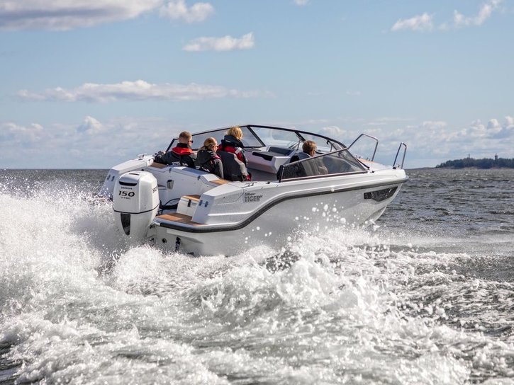 Silver Tiger soveltuu niin huviajeluihin ja retkeilyyn kuin yhteysveneilyyn. Hillityn värimaailmansa ansiosta vene on ajaton ja sopii laajalle käyttäjäkunnalle, mutta rohkea runkomuotoilu ja urheilullinen olemus kääntää varmasti päitä kun sillä saapuu satamaan.