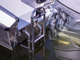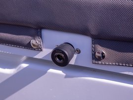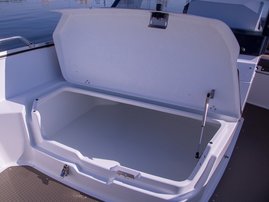 Akterbenkens konstruksjon er helt ny; benkens hele ovre del (inkl. ryggstøtte og armlener) kan lyftes, og under er der et stort oppbevaringsrom for utstyr og poser. I benken er det også et oppbevaringsrom for akterkalesje. Akterbenken er blitt planert så komforten er god både for sjåfør og passasjerer. Akterbenkens og seteryggens pute inkluderes i båtens standard pakkepris.