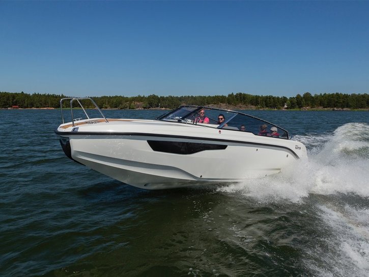 Standard utrustning er formidabel. Som stardard inkluderer vi som følger: 9 *Raymarine Axiom – kartplotter med CPT-100VS-giver, 260 liter bensintank, 2 vindus pussere, baugpropeller, puter i cabin og akterdekk, matte i cabin og trekompositt dekk i bunn og på badeplattform og fordekk. Et 3 delt akter kalesje, bord,trykkvanns system og 2 batterier.