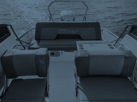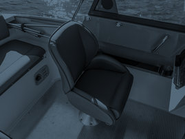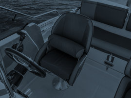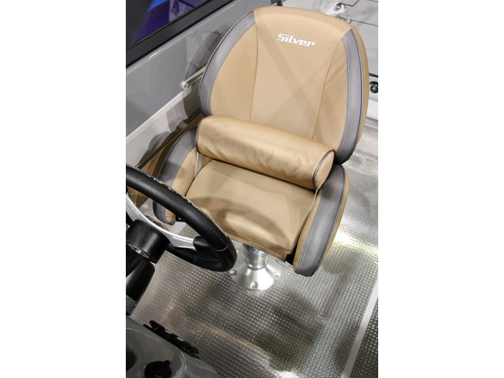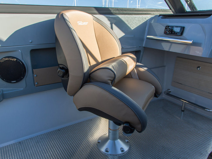 Standardutrustning. Helstoppad Pro Silver båtstol som passar Eagle BR-modellen (2016-). Vänstra sidans stol (babord). Färg på dynor: otono/meteor, 2016-.