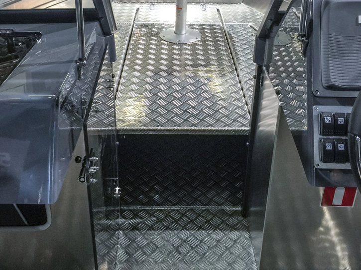 Erillinen alumiinilevy, jolla peitetään keulan keskikäytävä ja saadaan keulasta yhtenäinen taso esimerkiksi heittokalastukseen. Liukuestekuvioitu alumiinipinta. Hinta ei sisällä heittojakkaraa/-jalkaa.