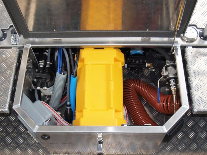 Kalasumppu, sis. kalvopumppu, 3-tiehana, läpiviennit, pesuletkun ja -pistoolin.