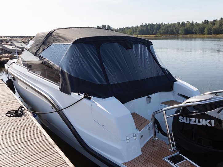 Pimennysverhosarja ripustetaan peräkuomun sisäpuolelle, jolloin takaosaan saa muodostettu parisängyn joka on katseilta suojassa. Verhosarjaan kuuluu myös väliverho, joka ripustetaan näkösuojaksi keulakajuutan ja avotilan taka-osan väliin.